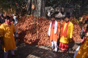 मान्यता है कि विगत करीब दो सौ वर्ष पूर्व क्षेत्र में फैली भयंकर महामारी के बाद पूर्वजों ने भगवान बलराम का आह्वान किया था और यहां उनके वाहन के रूप में घोड़े की स्थापना की थी। उसके बाद क्षेत्र से महामारी समाप्त हुई थी। तब से लेकर आज तक कुंभकार समाज की ओर से इस परंपरा का निर्वहन किया जा रहा है। जिनकी मन्नते पूरी होती है वे यहां मिट्टी के घोड़े चढ़ाते हैं तथा प्रसाद का भोग भी लगाते हैं। इस दौरान जिनकी मन्नतें पूरी हुई है उनके द्वारा भी मन्दिर में घोड़ा व प्रसाद चढ़ाया गया। साथ ही, कई श्रद्धालुओं ने पूजा अर्चना कर मन्नतें भी की। इस मौके पर भजन पर आधारित सांस्कृतिक कार्यक्रम का आयोजन भी किया गया जिसमें स्थानीय कलाकारों द्वारा एक से बढ़कर एक भजनों की प्रस्तुति की गई। इस मौके पर सर्वप्रथम प्रातःकाल में देवड़ी शंकर दास व गणेश दास द्वारा पारंपरिक विधि विधान से पूजा अर्चना कर क्षेत्र के सुख व समृद्धि की कामना की गई। इस पूजनोत्सव में जिले के सरायकेला, गम्हरिया, कांड्रा, आदित्यपुर समेत आसपास के क्षेत्रों से एक लाख से अधिक श्रद्धालू शामिल हुए। प्रातः चार बजे से ही श्रद्धालुओं की भीड़ लगनी प्रारंभ हो गई थी जो शाम तक जारी रही। इस मौके पर भव्य मेला का आयोजन भी किया गया था जिसका लोगों ने काफी लुत्फ उठाया।