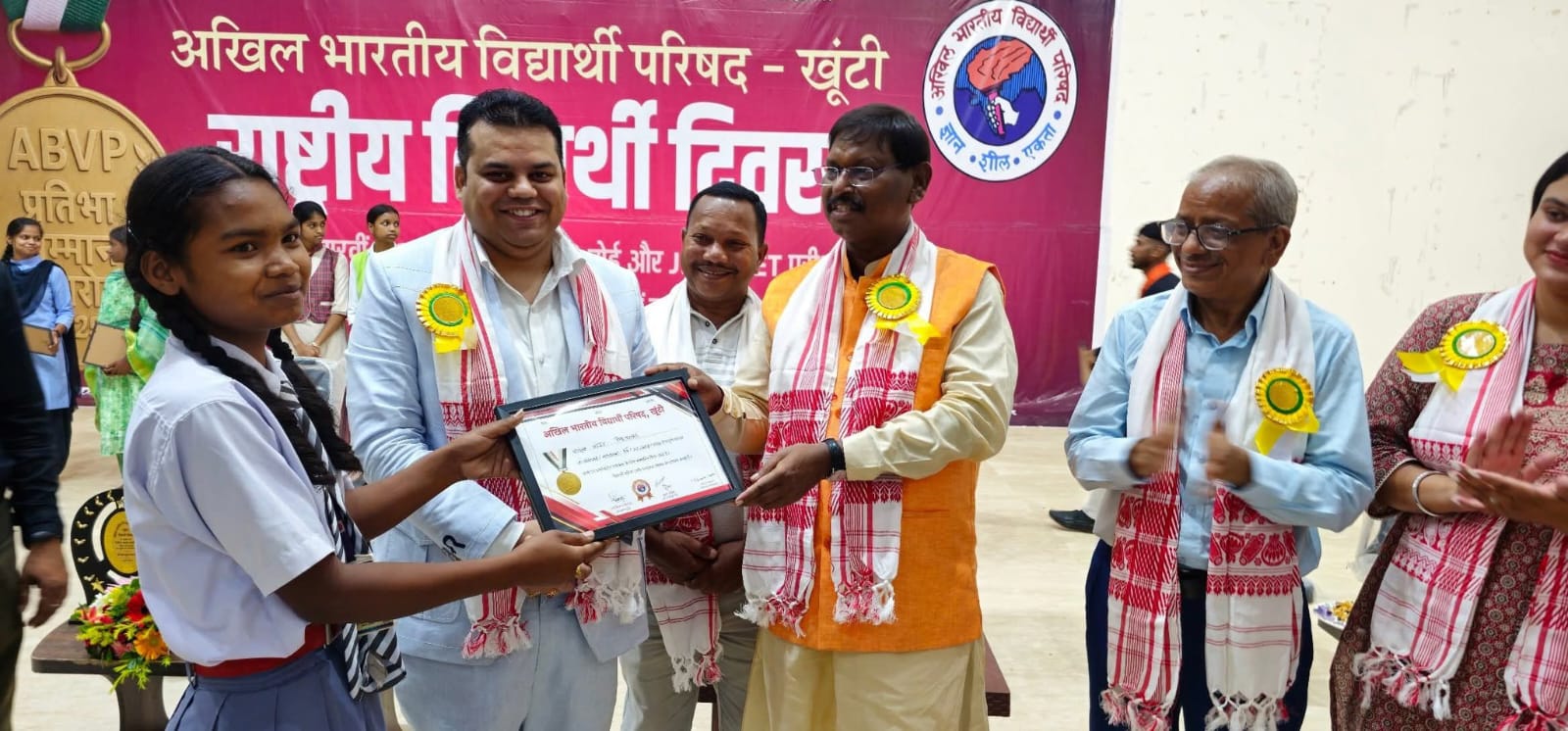 पूर्व मुख्यमंत्री अर्जुन मुंडा बिरसा कॉलेज, खूंटी में आयोजित अखिल भारतीय विद्यार्थी परिषद (ABVP) के 77वें स्थापना दिवस एवं राष्ट्रीय विद्यार्थी दिवस कार्यक्रम में शामिल हुए। इस अवसर पर उन्होंने मैट्रिक और इंटरमीडिएट परीक्षा में उत्कृष्ट प्रदर्शन करने वाले छात्रों को सम्मानित किया।