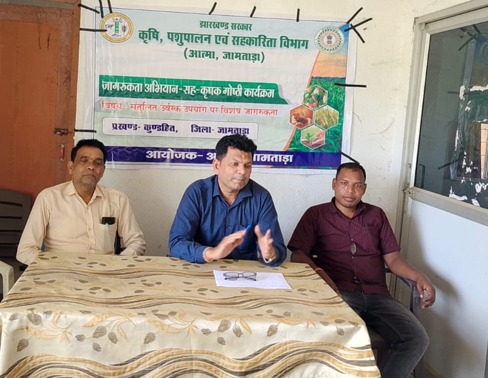 जामताड़ा: कुंडहित प्रखंड के कृषि तकनीकी सूचना केंद्र के तत्वावधान में गयपथर पंचायत के ग्राम नमूनमंधारा में किसानों के बीच संतुलित उर्वरक उपयोग एवं किसान क्रेडिट कार्ड (केसीसी) से संबंधित जागरूकता अभियान सह गोष्ठी का आयोजन किया गया। कार्यक्रम का उद्देश्य किसानों को कृषि योजनाओं की जानकारी देकर उन्हें अधिकाधिक लाभ पहुंचाना था।