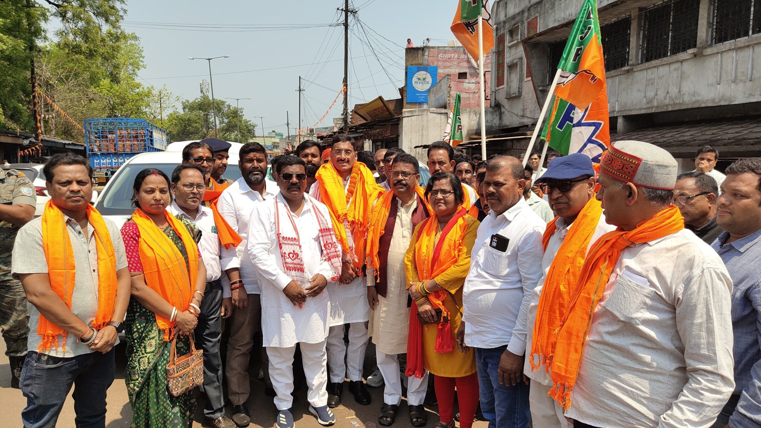 भाजपा कार्यकर्ताओं ने रक्षा राज्य मंत्री संजय सेठ का कांड्रा में भव्य स्वागत