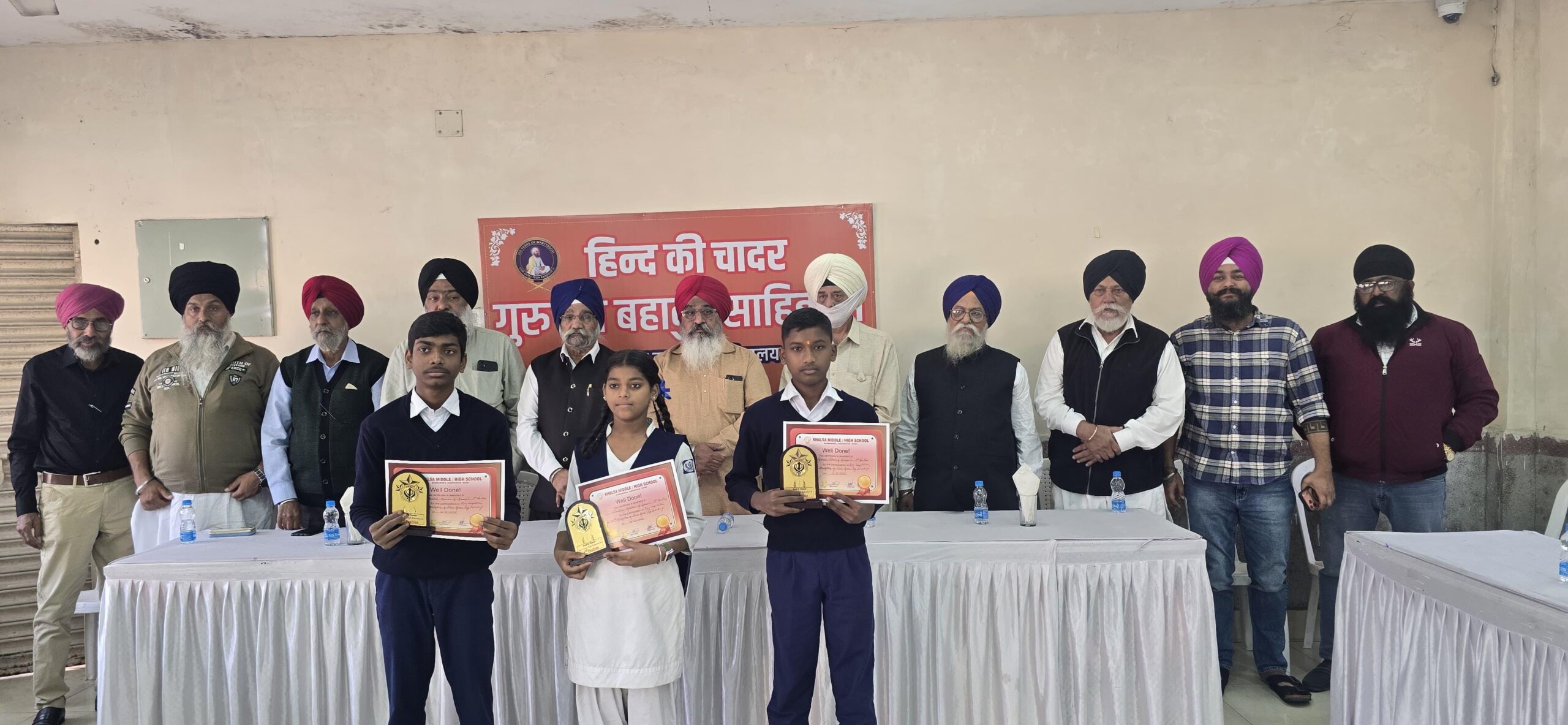 आज दिनांक 01.12.2025 को खालसा मध्य/ उच्च विद्यालय वर्मा माइंस में हिंद की चादर गुरु तेग बहादुर जी के 350 वीं शहादत दिवस समारोह का आयोजन किया गया । जिसका मुख्य उद्देश्य गुरु जी के दिलेर, निर्भय तथा त्यागी स्वभाव तथा उनकी हिंदुओं के धार्मिक आस्था जानेऊ तथा तिलक की रक्षा करते हुए दिये गए सर्वोच्च बलिदान से बच्चों तथा समाज को अवगत कराना था जिसमें सेंट्रल गुरुद्वारा प्रबंधन कमेटी के प्रधान भगवान सिंह तथा शैलेंद्र सिंह और उनकी पूरी टीम उपस्थित थी नौजवान सभा के प्रधान अमरीक सिंह भी वहा उपस्थित थे । जमशेदपुर अकाली दल के सदस्य गण, बर्मामाइंस गुरुद्वारा तथा स्कूल प्रबंधन समिति के सभी सम्मानित सदस्यगण , स्त्री सत्संग सभा के सभी सदस्य , अध्यक्ष सविंदर सिंह , सरदार हरभजन सिंह तथा मध्य एवं उच्च विद्यालय के प्रधानाध्यापक तथा प्रधानाध्यापिका भी इस समारोह में उपस्थित थे। विद्यालय सचिव सरदार सुखपाल सिंह जी द्वारा समारोह का शुभारंभ किया गया। मंच का संचालन विद्यालय की अध्यापिका श्रीमती रीना जी द्वारा किया गया और इस कार्यक्रम में विद्यालय में आयोजित चित्रांकन प्रतियोगिता, निबंध प्रतियोगिता , प्रश्नोत्तरी प्रतियोगिता तथा भाषण प्रतियोगिता का प्रथम द्वितीय तथा तृतीय स्थान प्राप्त करने वाले छात्र-छात्राओं को मुख्य अतिथि तथा अन्य तमाम अतिथियों द्वारा प्रमाण पत्र तथा मोमेंटम प्रदान उन्हें प्रोत्साहित किया गया। इसके अतिरिक्त खालसा मध्य विद्यालय के प्रिंस कुमार वर्ग 7द्वारा गुरुदेव तेग बहादुर जी की जीवनी , सुहाना कुमारी वर्ग 10 द्वारा हिंद की चादर तथा हिमांशु साहू वर्ग 9 द्वारा गुरु तेग बहादुर जी के शहादत के ऊपर संबोधन प्रस्तुत किया गया । बच्चों द्वारा गुरु तेग बहादुर जी के जीवन पर आधारित मॉडल भी तैयार किया गया जिसे देखकर विद्यालय में मौजूद उपस्थित मुख्य अतिथि तथा अन्य अतिथिगण काफी प्रभावित हुए । अंत में स्कूल के सह – सचिव सतबीर सिंह सोमु द्वारा धन्यवाद ज्ञापन करते हुए उपस्थित तमाम अतिथियों का, विद्यालय के सभी शिक्षकों का तथा जिन बच्चों द्वारा इस आयोजन को संपन्न कराने में मुख्य भूमिका निभाया गया उन सभी का तहे दिल से धन्यवाद ज्ञापन किया गया ।