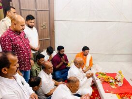 जमशेदपुर। इस जगत के पालनहार भगवान श्री विष्णु के वाहन श्री गरुड़ जी की प्रतिमा का अधिष्ठापन कार्य आज श्रीलक्ष्मीनारायण मंदिर में वैदिक मंत्रोच्चारण के बीच संपन्न हुआ। इस पूजा के मुख्य यजमान जमशेदपुर पश्चिम के विधायक सरयू राय थे। आज की पूजा के प्रबंधक असीम पाठक थे। मुख्य पूजन विद्वान पंडित विनोद पांडेय और उनके साथियों ने करायी।