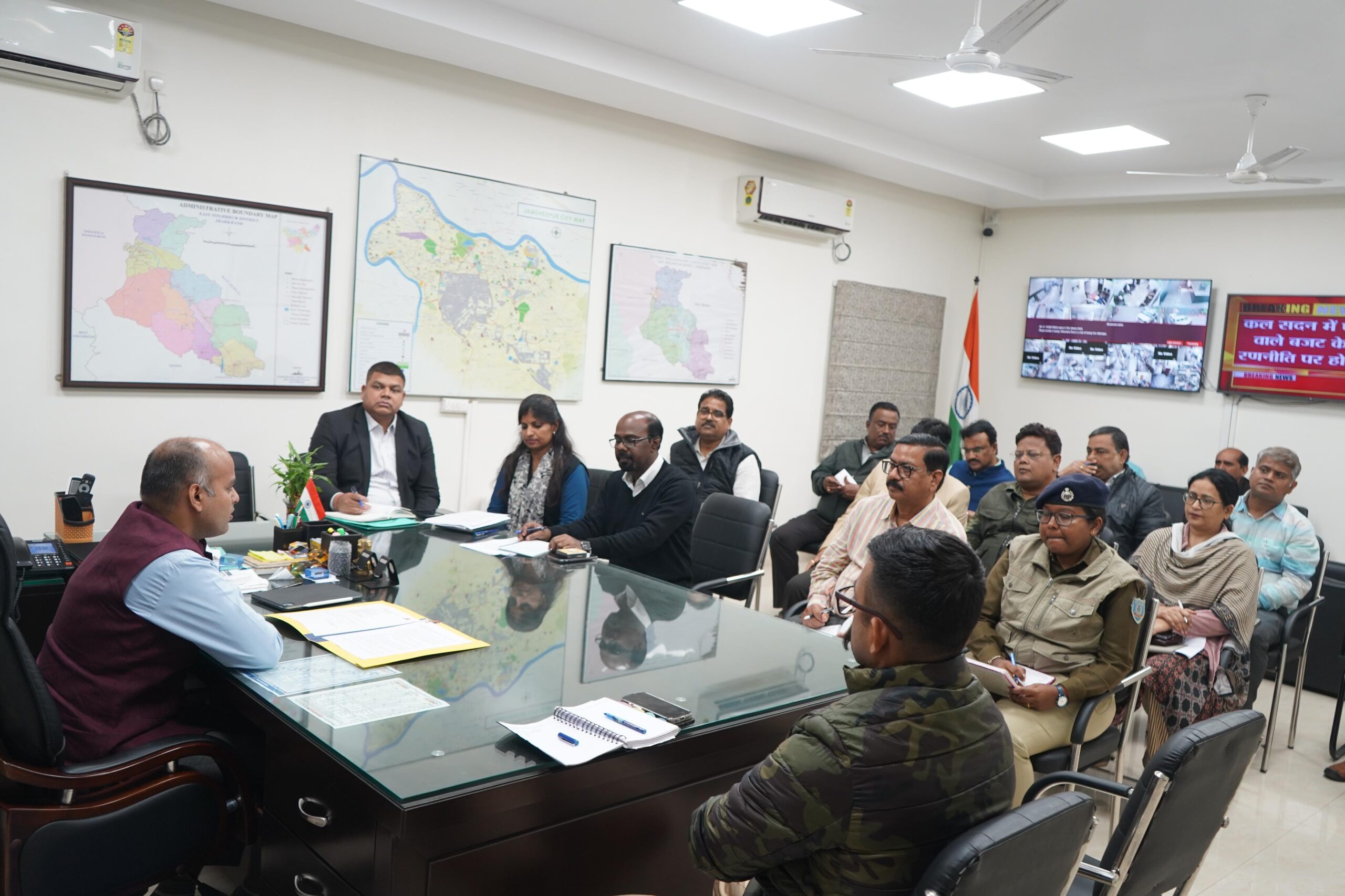 जमशेदपुर।नगरपालिका चुनाव–2026 को स्वतंत्र, निष्पक्ष एवं पारदर्शी ढंग से संपन्न कराने के उद्देश्य से जिला निर्वाचन पदाधिकारी (नगरपालिका) सह उपायुक्त श्री कर्ण सत्यार्थी की अध्यक्षता में समाहरणालय सभागार में प्रवर्तन एजेंसियों के साथ समीक्षा एवं समन्वय बैठक आयोजित की गई। बैठक में पुलिस प्रशासन, आयकर, आबकारी, परिवहन, रेलवे, बैंकिंग संस्थान सहित संबंधित विभागों के पदाधिकारी उपस्थित रहे।