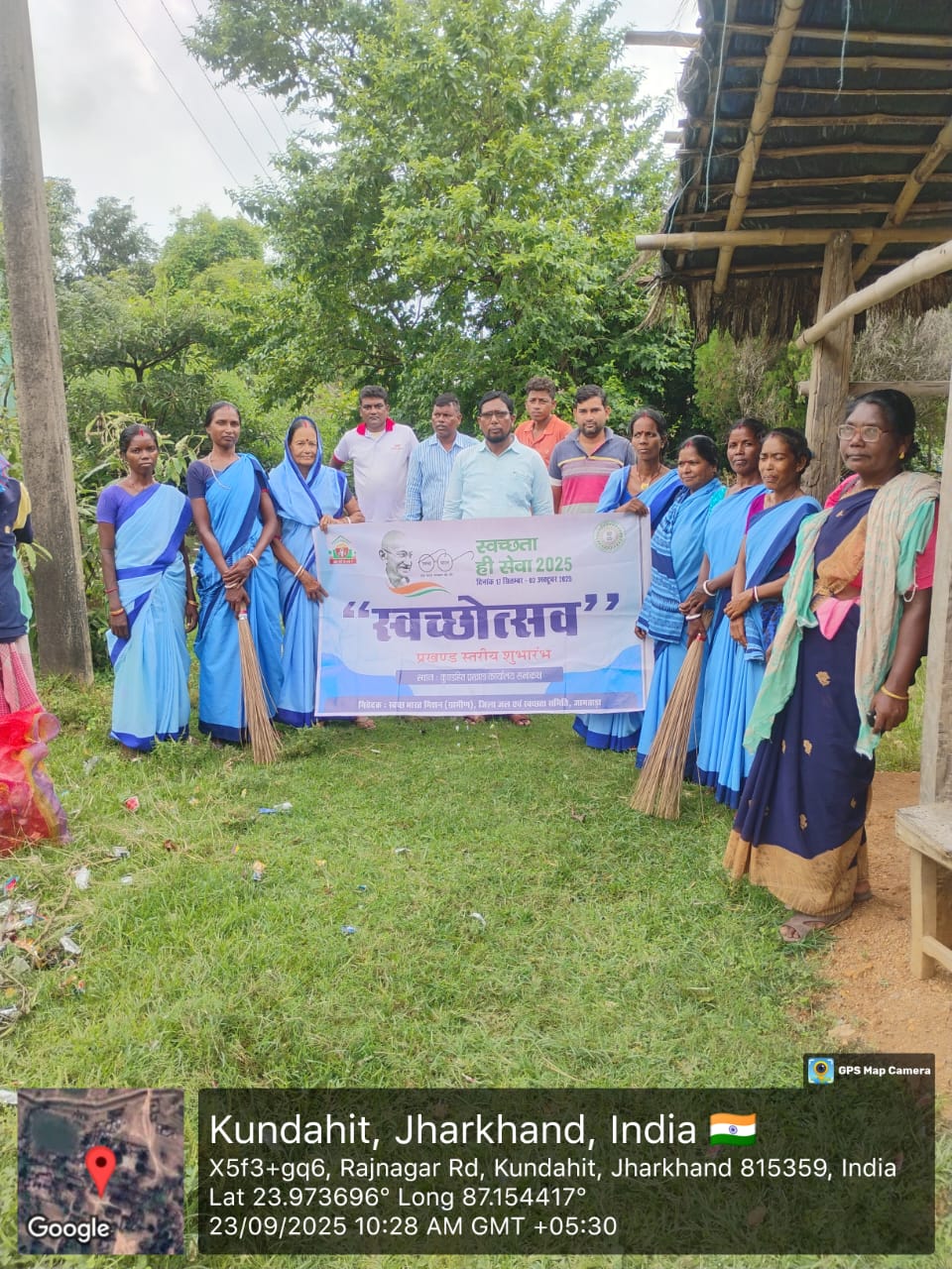 23 सितंबर 2025 को कुंडहित पंचायत भवन और 10 चिन्हित स्थलों पर स्वच्छता ही सेवा 2025 स्वछोत्सव के तहत सफाई अभियान चलाया गया। कार्यक्रम का नेतृत्व मुखिया विमला हांसदा ने किया। अभियान में वॉश समन्वयक मो. रफीक हुसैन, जल सहिया बेबिरानी नायक, रेखा किस्कू, सरला मुर्मू, टुंपा पाल, सजनी मरांडी, पनमनी मुर्मू, पूर्णिमा सिंह समेत ग्रामीणों ने भाग लिया। ग्रामीणों को आसपास सफाई रखने, कचरा न फैलाने और एकल उपयोग वाले प्लास्टिक से बचने के लिए जागरूक किया गया। एकत्रित पॉलिथीन व प्लास्टिक को कुंडहित ब्लॉक स्थित प्लास्टिक वेस्ट मैनेजमेंट यूनिट में भेजा गया।