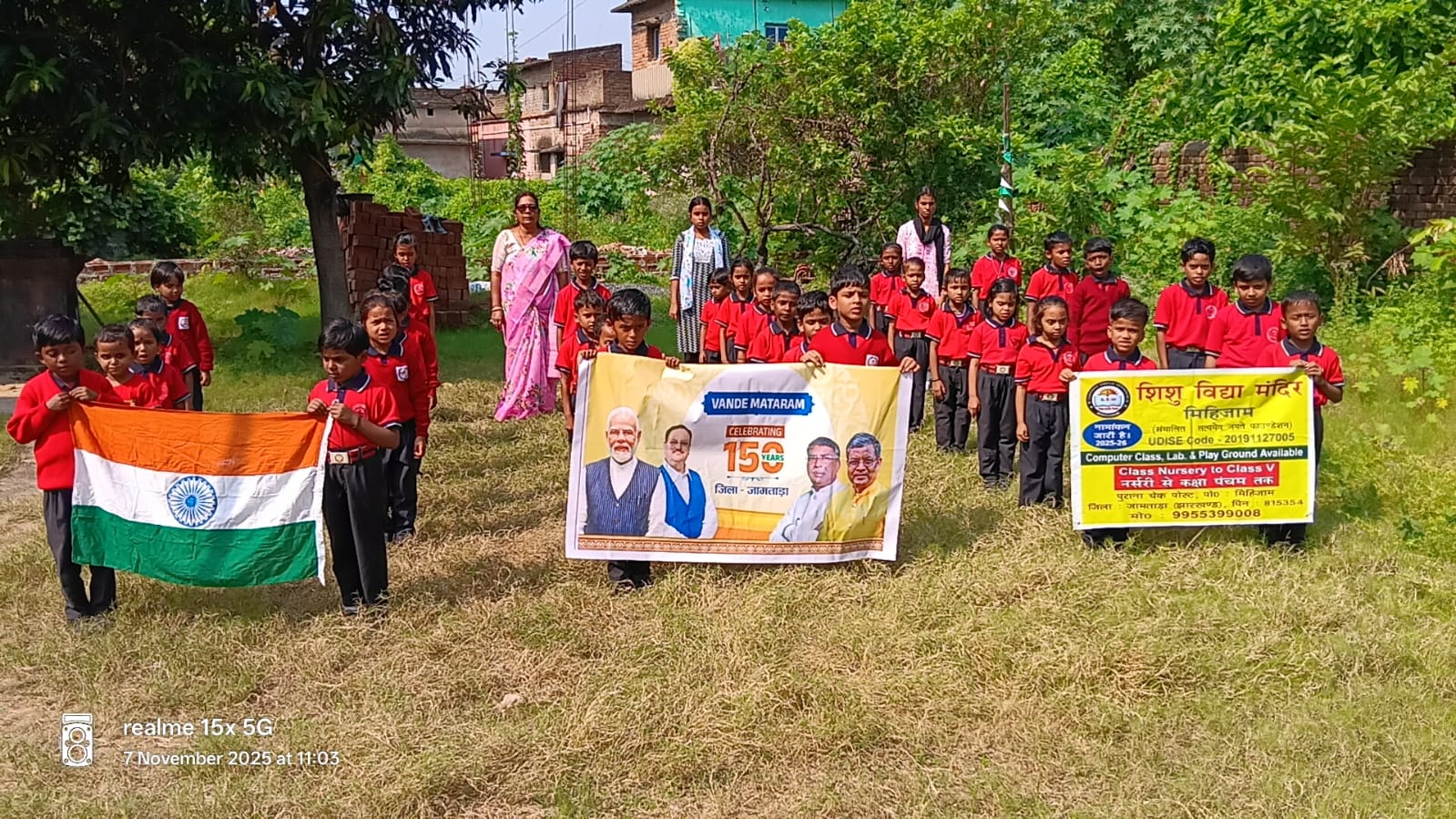 जामताड़ा: मिहिजाम स्थित शिशु विद्या मंदिर में राष्ट्रगीत वंदे मातरम के 150 वर्ष पूर्ण होने के उपलक्ष्य में राष्ट्रव्यापी कार्यक्रम के तहत भव्य आयोजन किया गया। इस अवसर पर विद्यालय परिसर में वंदे मातरम का सामूहिक गायन किया गया तथा तिरंगा पेंटिंग प्रतियोगिता का आयोजन भी हुआ, जिसमें बच्चों ने उत्साहपूर्वक भाग लिया।