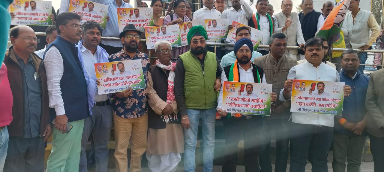 इस अवसर पर भारी संख्या में कांग्रेस नेताओं ने हाथ में तख्ती लेकर “संविधान बचाओ-देश बचाओ”, “संविधान की रक्षा कौन करेगा-हम करेंगे – हम करेंगे”, ‘संविधान का अपमान’-नही सहेगा हिंदुस्तान’, “लाठी गोली खाऐंगे-संविधान को बचाऐंगे”, “बाबा भीमराव अंबेडकर-जिंदाबाद – जिंदाबाद” का नारा बुलंद कर आम जनता को जागरूक किया।