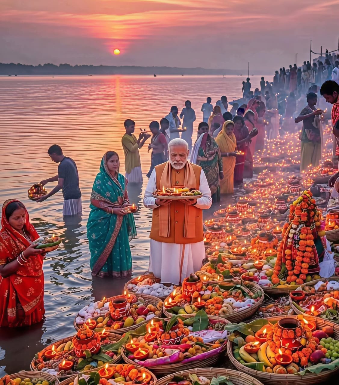 मोदी ने आगे कहा कि “सभी व्रती भक्तों और श्रद्धालुओं के साथ इस पावन पर्व का हिस्सा बने हमारे सभी परिवारजनों को हार्दिक बधाई। छठी मैया की असीम कृपा आप सभी के जीवन को सदैव आलोकित रखे।”