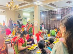 कार्यक्रम की शुरुआत पूजा समारोह से हुई, जिसके पश्चात प्रसाद वितरण किया गया। दोपहर में छात्रों और अभिभावकों ने भोग समारोह में भाग लिया, जिससे विद्यालय परिसर में भक्तिमय और उत्सवी वातावरण बना रहा।