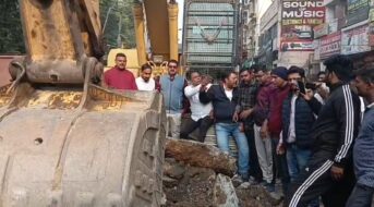 Saryu Rai supporters came on Mango Road and stopped the construction work.
