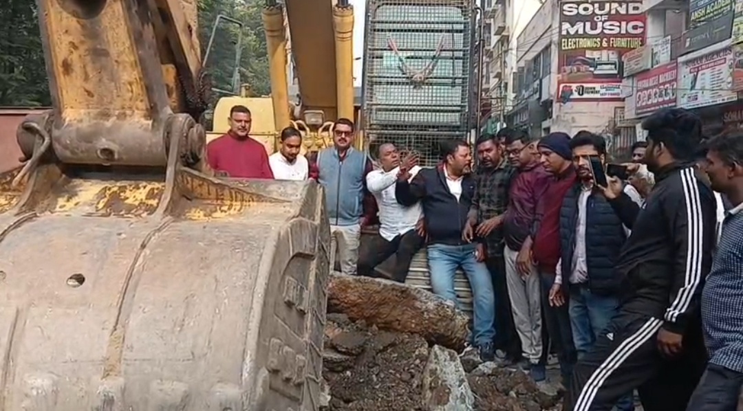 सरयु राय समर्थकों ने मानगो मार्ग पर उतर कर निर्माण कार्य रोका